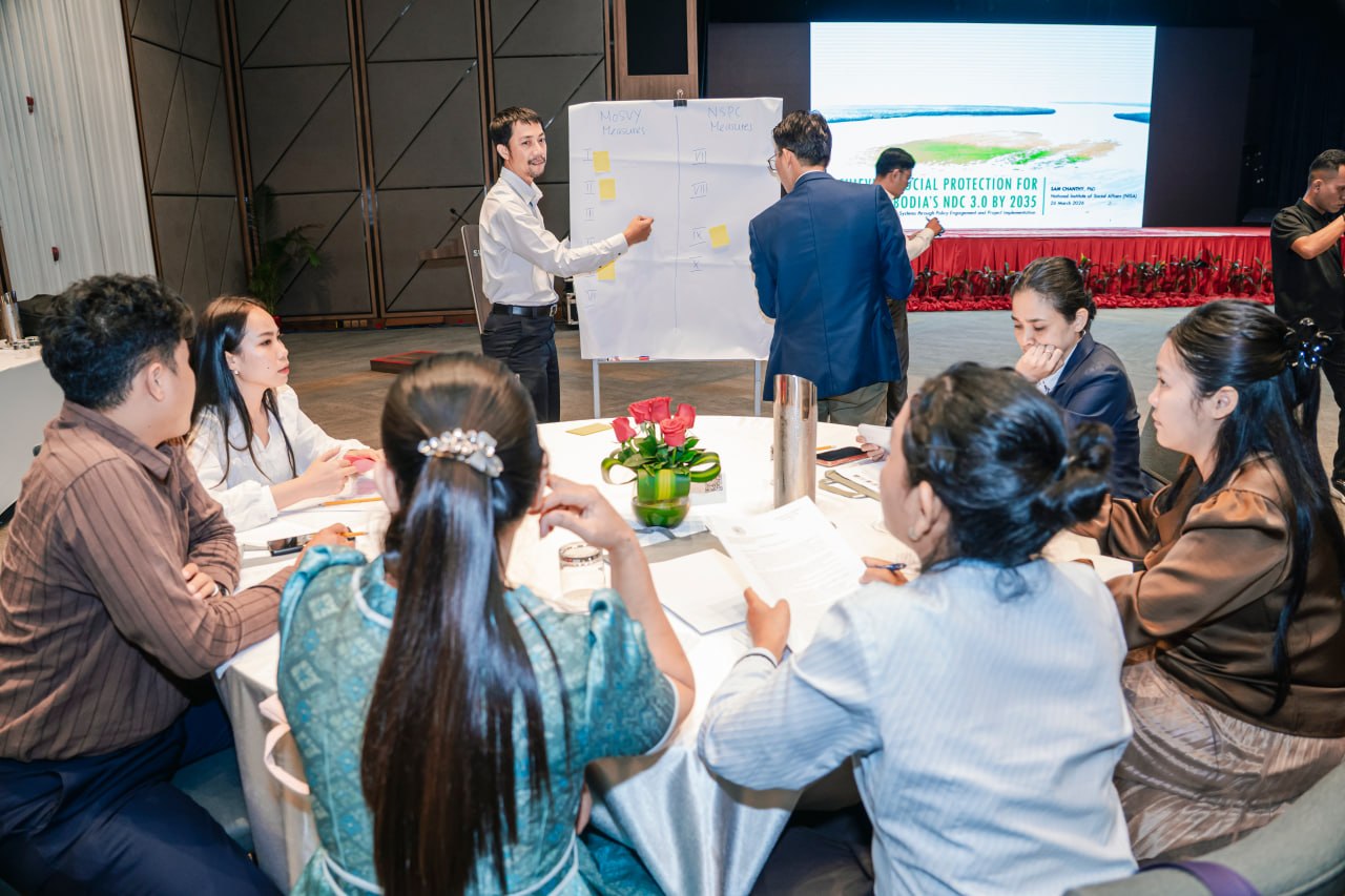 On 26 March 2026, the Ministry of Environment (MOE), Ministry of Social Affairs, Veteran and Youth Rehabilitation (M0SVY), National Institute of Social Affairs (NISA), and Analyzing Development Issues Centre (ADIC) co-organised a Consultative Workshop on Project Conceptualisation “Achieving Social Protection in NDC 3.0”, aiming at translating national commitments into tangible practices for achieving social protection for vulnerable and at-risk populations, while also contributing to Cambodia’s NDC 3.0.