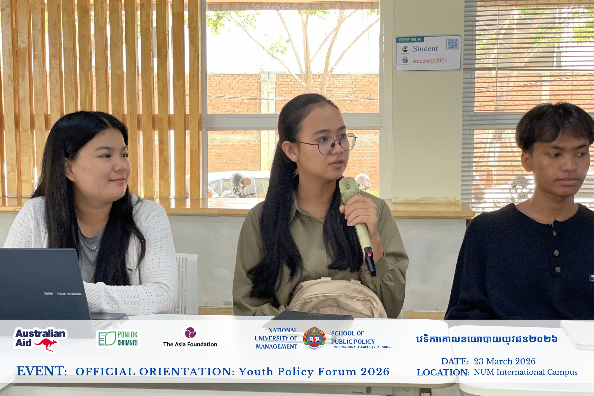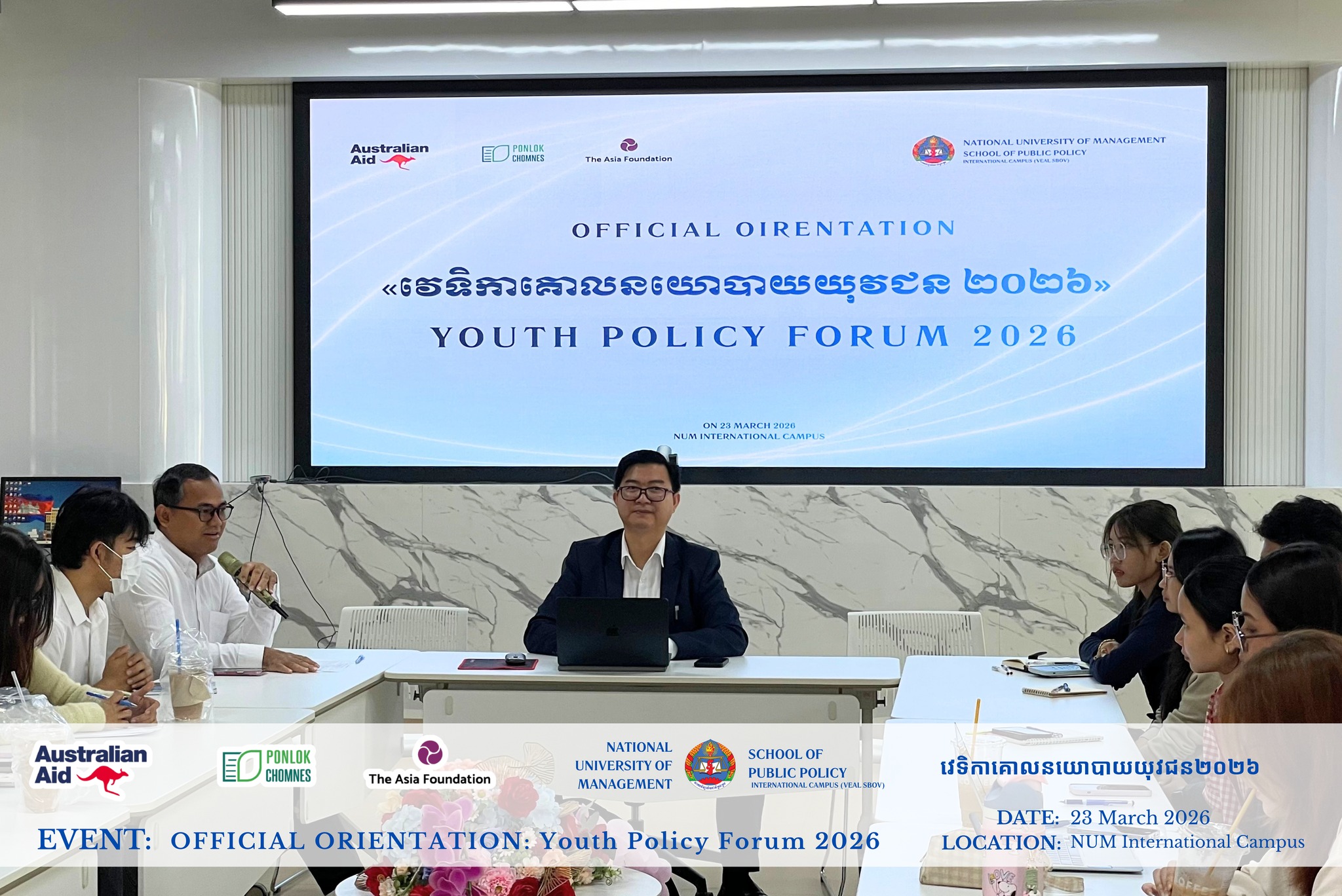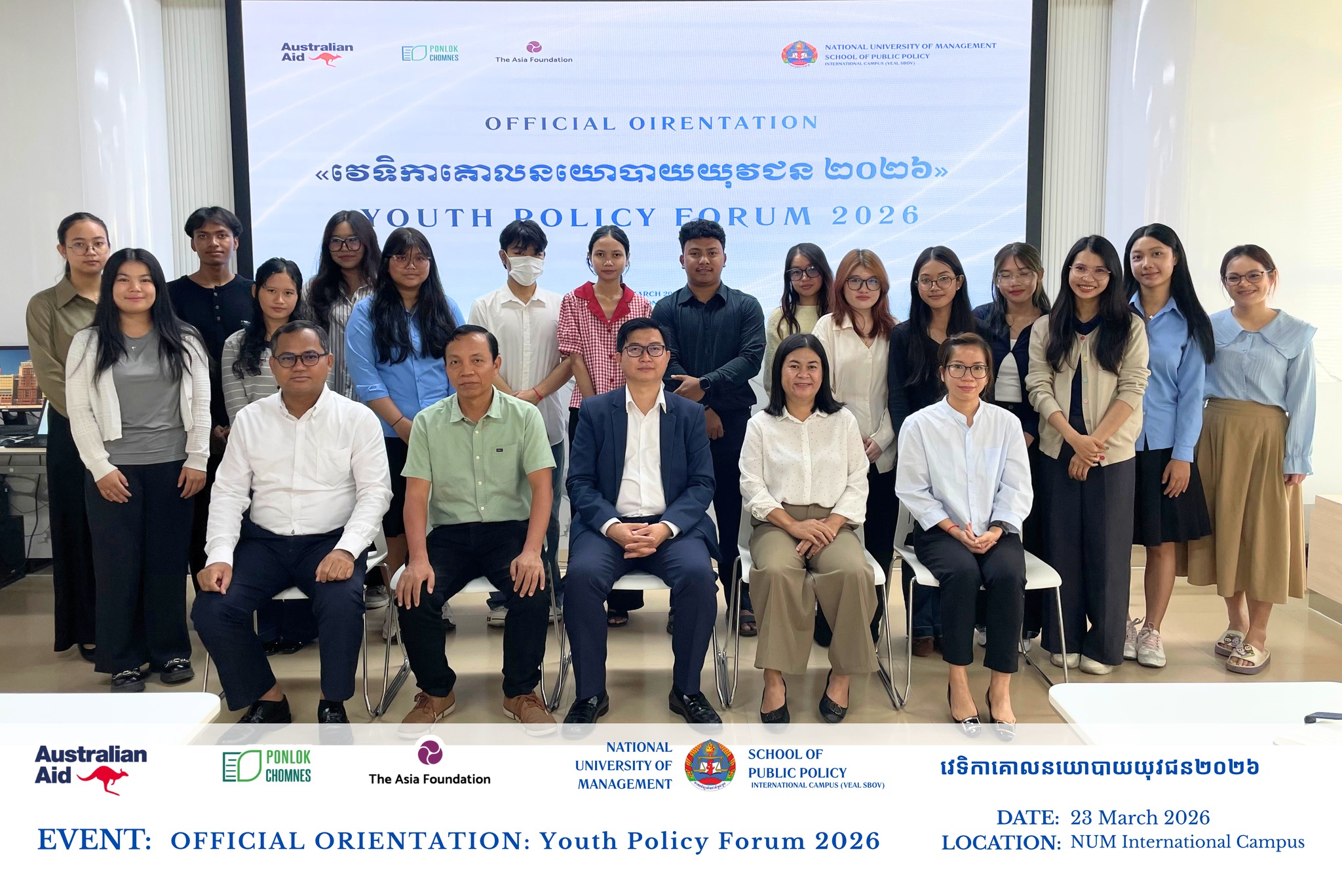 The first orientation of the Youth Policy Forum officially launched on 23 March 2026, bringing together students to build skills in policy analysis, evidence-based research, and engagement with policymakers. This initiative bridges academic learning and real-world governance, enabling youth to play an active role in shaping Cambodia’s future.