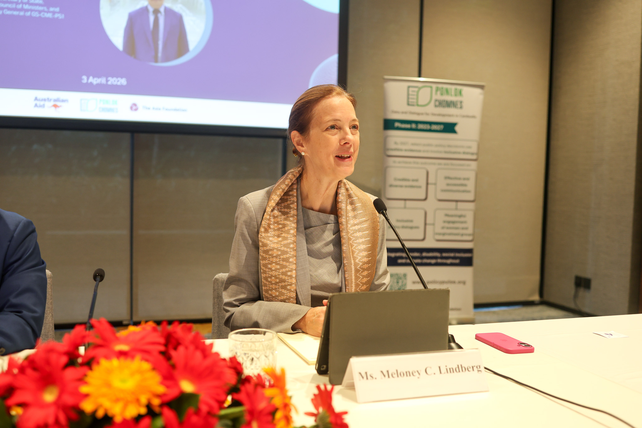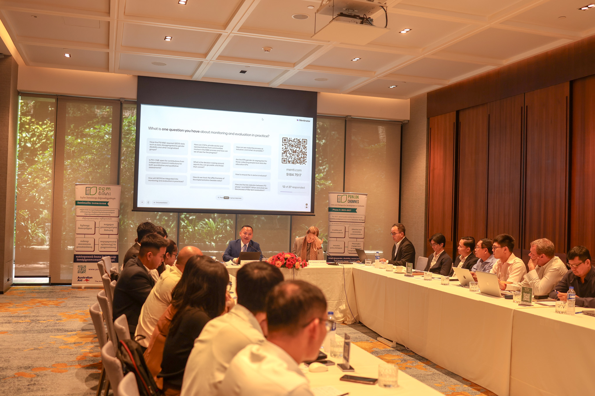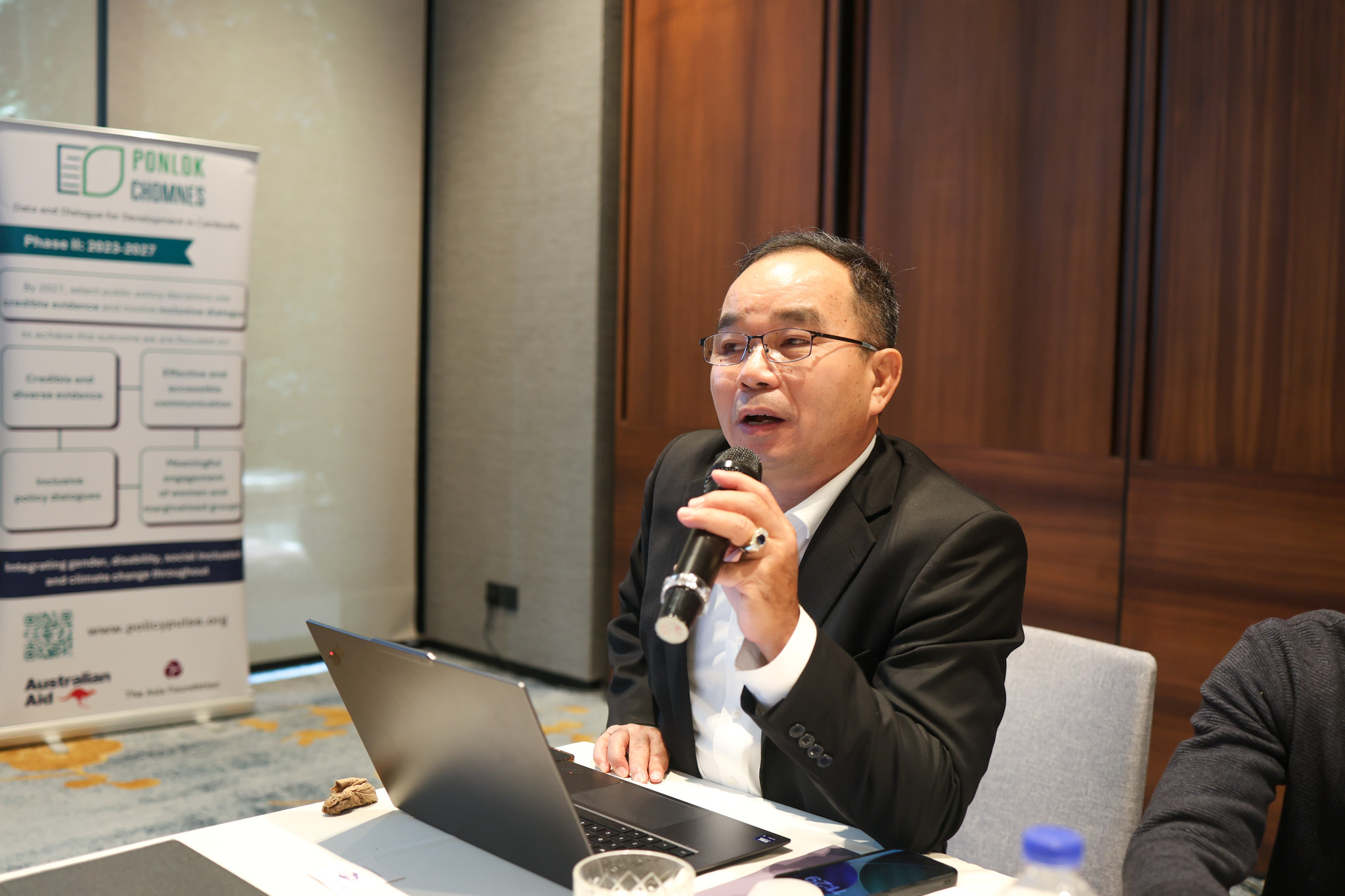 This sharing session aimed to provide partners with deeper understanding of the Royal Government’s approach to monitoring and evaluating the implementation of the Pentagonal Strategy. The discussion focused on the vital role of Cambodia’s knowledge sector in providing data, research, and analysis to support monitoring, learning, and policy formulation. Furthermore, the discussion explored ways to integrate Gender Equality, Disability, and Social Inclusion (GEDSI) into the national strategy’s monitoring framework, ensuring that all research evidence effectively contributes to development for everyone, leaving no one behind.