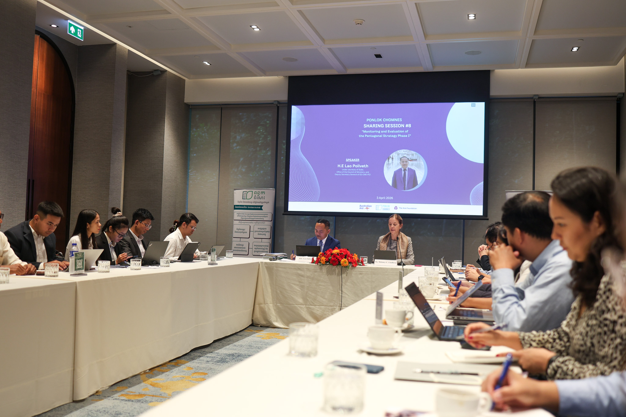 On 3 April 2026, Ponlok Chomnes convened a sharing session on: “Monitoring and Evaluation of the Pentagonal Strategy Phase I: Understanding the Framework and Exploring Linkages with Cambodia’s Knowledge Sector” bringing together over 30 participants, including representatives from research institutions, governments, public institutions, and civil society organisations.