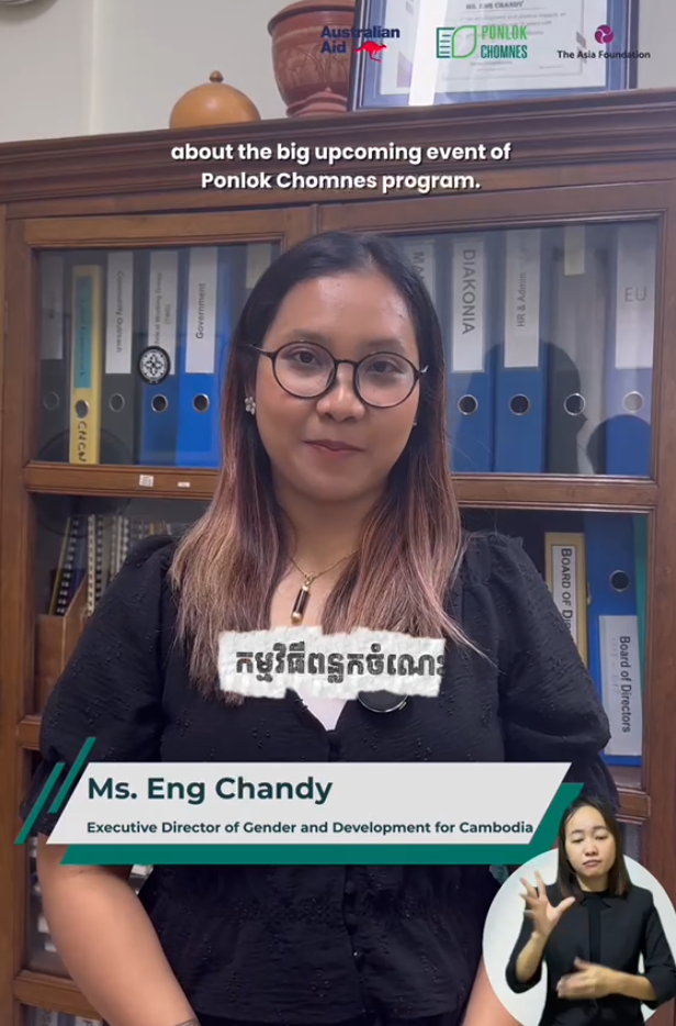 សូមស្តាប់លោកស្រី អេង ចាន់ឌី មកពីអង្គការយេនឌ័រ និងអភិវឌ្ឍដើម្បីកម្ពុជា (GADC) ដែលជាអ្នកសហការរៀបចំព្រឹត្តិការណ៍របស់យើង រំលេចអំពីប្រធានបទឆ្នាំនេះ៖ “ការតាក់តែងគោលនយោបាយប្រកបដោយបរិយាបន្ននៅក្នុងបរិបទប្រែប្រួល៖ ការផ្សារភ្ជាប់ចំណេះដឹង គោលនយោបាយ និងមនុស្សជាតិ”។