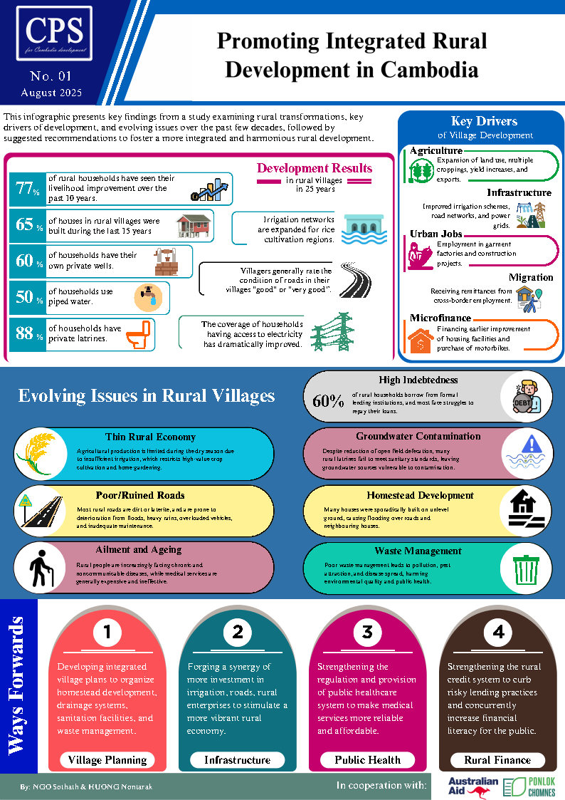 Explore key findings from Ponlok Chomnes Strategic Partner, Centre for Policy Studies’ latest infographic on “Promoting Integrated Rural Development in Cambodia.”