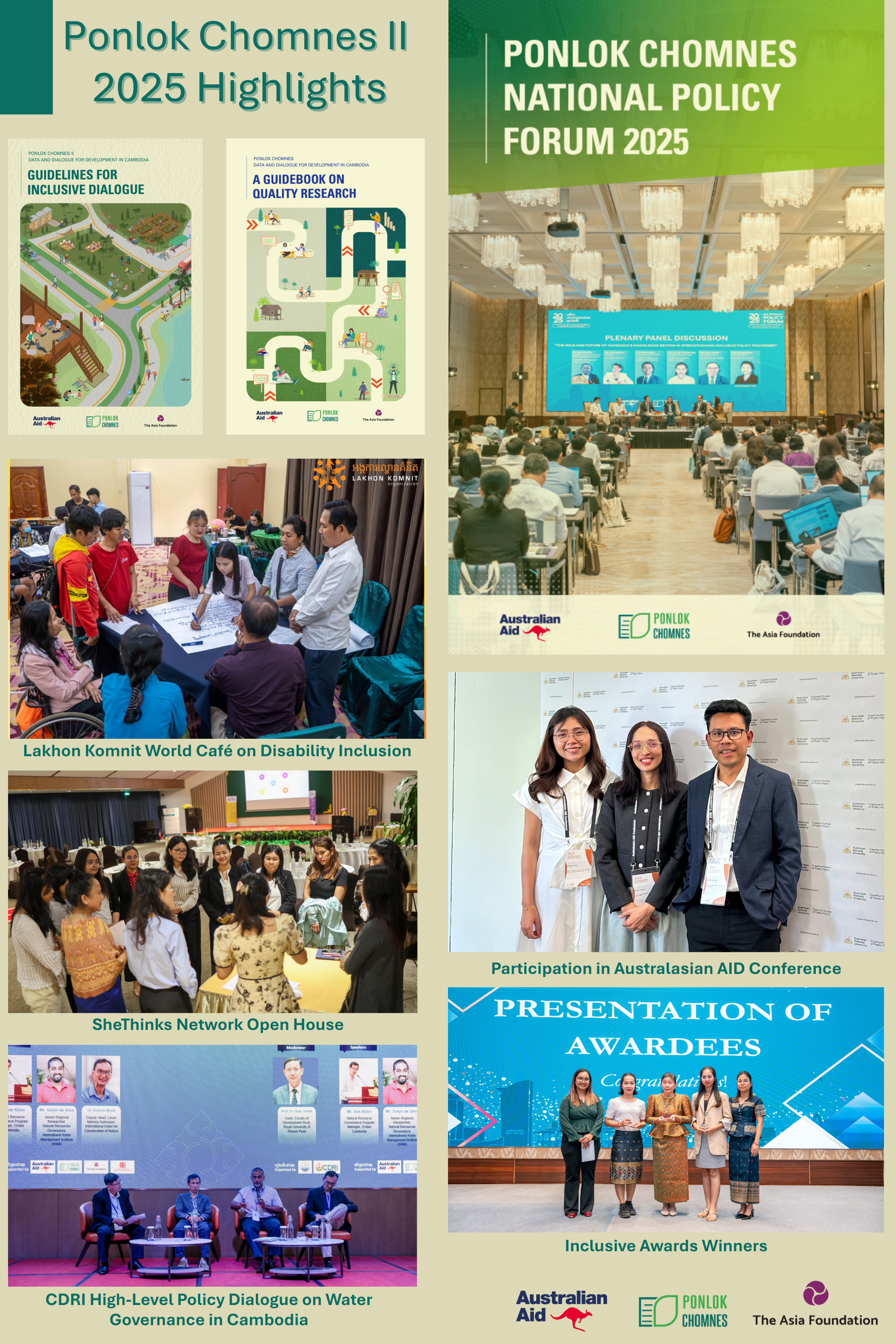 In 2025, Ponlok Chomnes II: Data and Dialogue for Development in Cambodia continued to strengthen Cambodia’s knowledge and policy ecosystem through a wide range of events, policy dialogues, research initiatives, and knowledge publications, delivered in close collaboration with our partners.