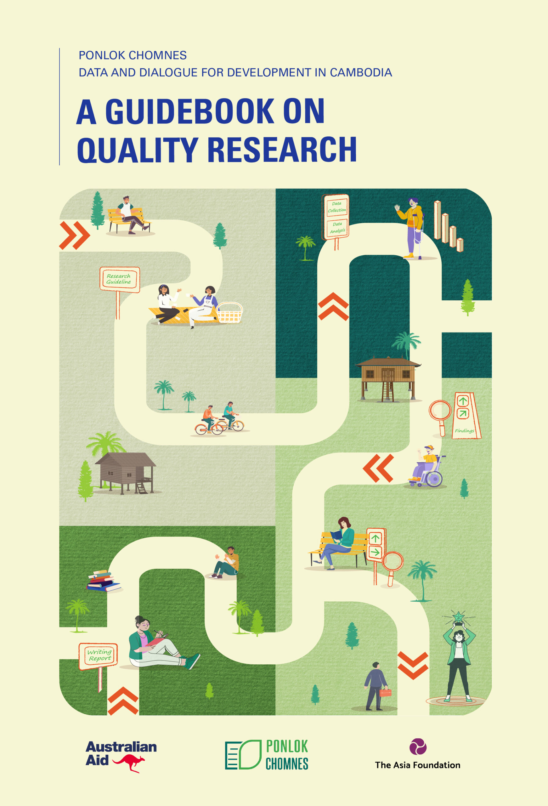 Ponlok Chomnes Program would like to share “A Guidebook on Quality Research” co-developed with the Program’s partners, including the Strategic Partners (CDRI, CICP, CKS, CPS, and FF), the Gender Equality, Disability, and Social Inclusion (GEDSI) Consortium (CDPO, GADC, and WPM), the Ponlok Chomnes team, and The Asia Foundation’s Evaluation and Learning Unit.